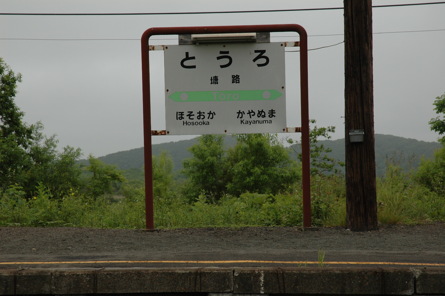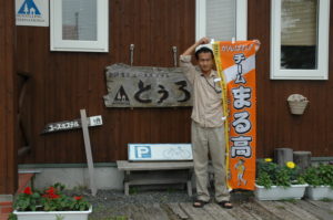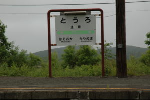 「熊の湯」前の路上でダンボール紙に「ウトロ」と書いた顔の濃い青年が立っていました。