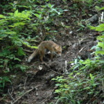 温泉前の湖の湖畔林道に車を進めていたらキタキツネに遭遇しました。