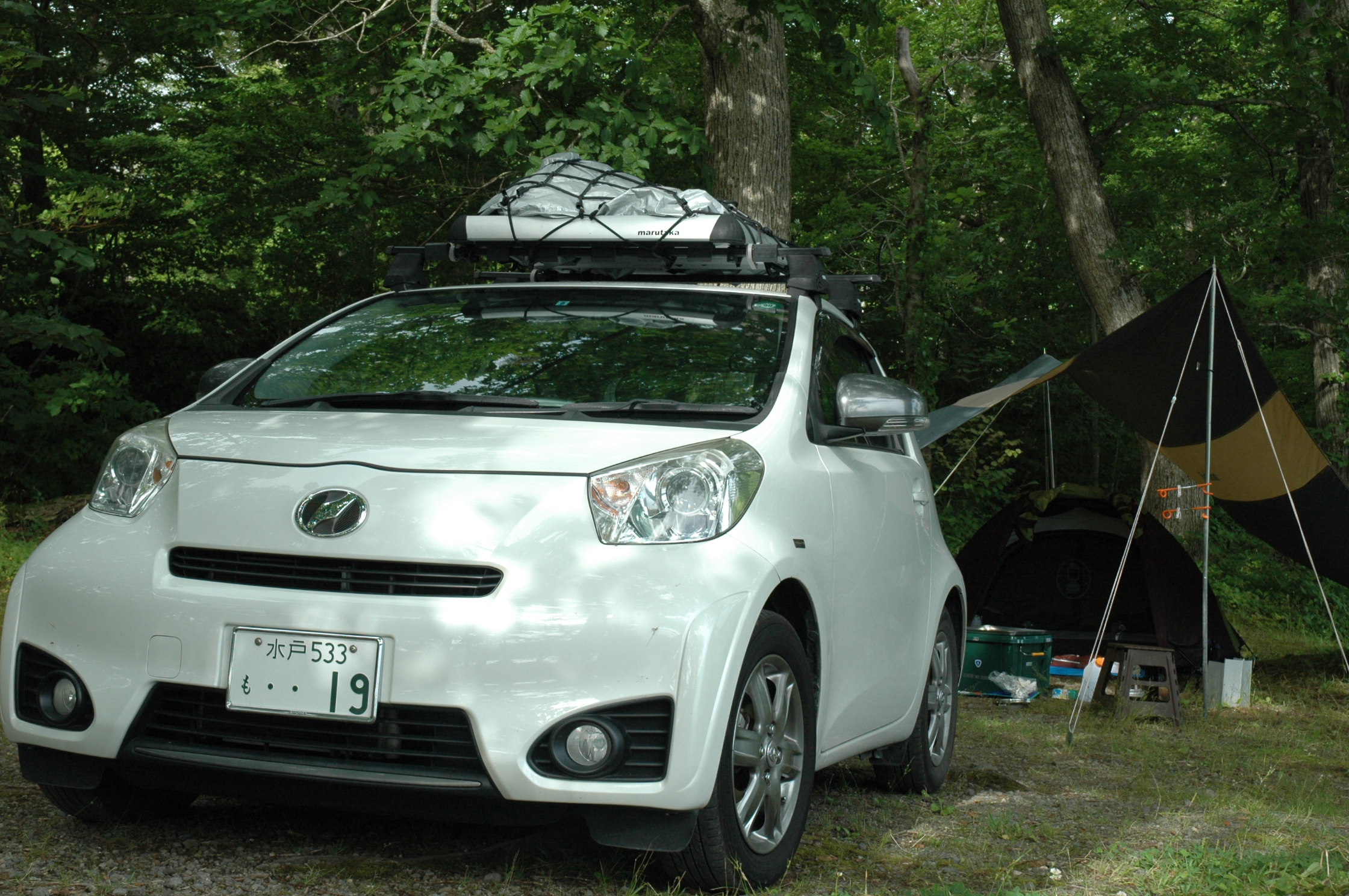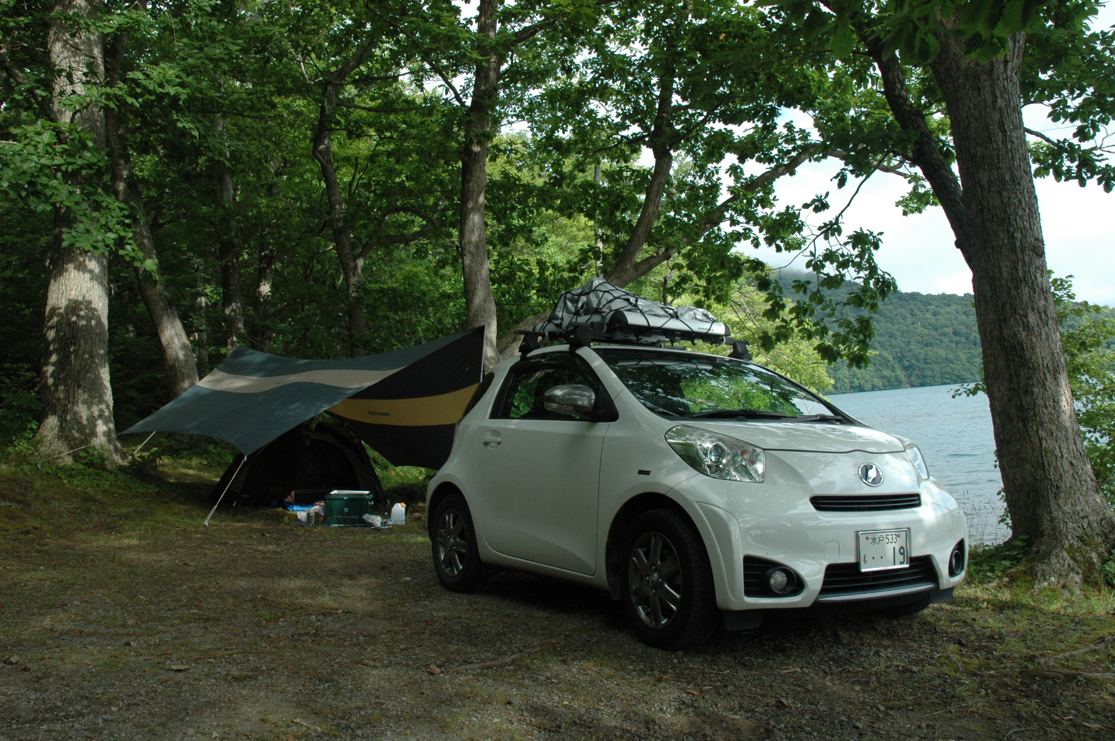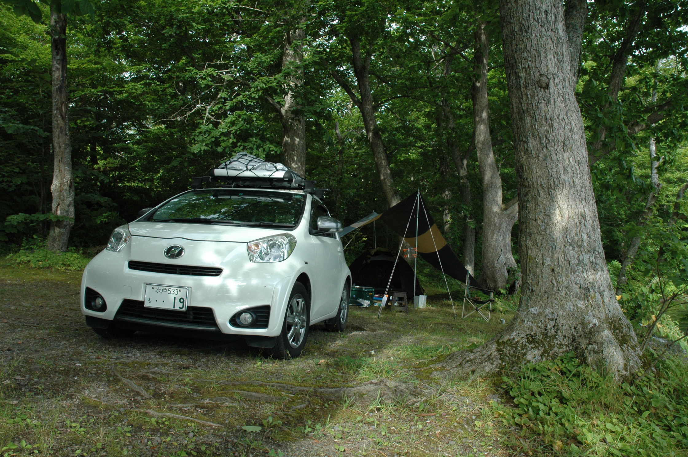 奥入瀬渓流沿いを愛車トヨタiQ 130GMTのルーフキャリアに積んできた愛車ミニベロ・FIAT AL-FDB140で、ポタリングしようと思いましたが、道路のアップダウンが激しく変速機のない愛車ミニベロではつらいので中止、根性なしです。
