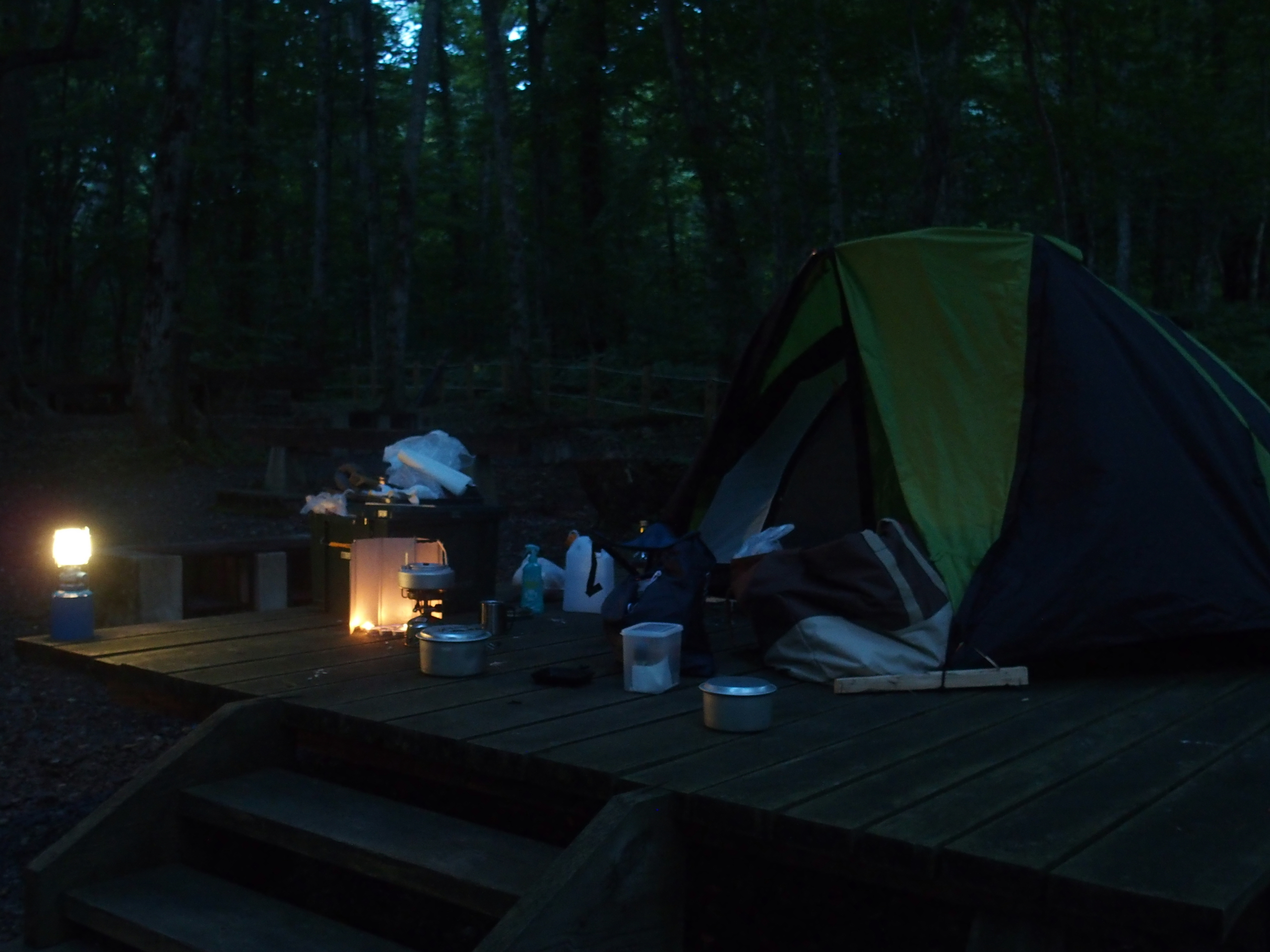 ●初日:午後からテント設営。呑む。