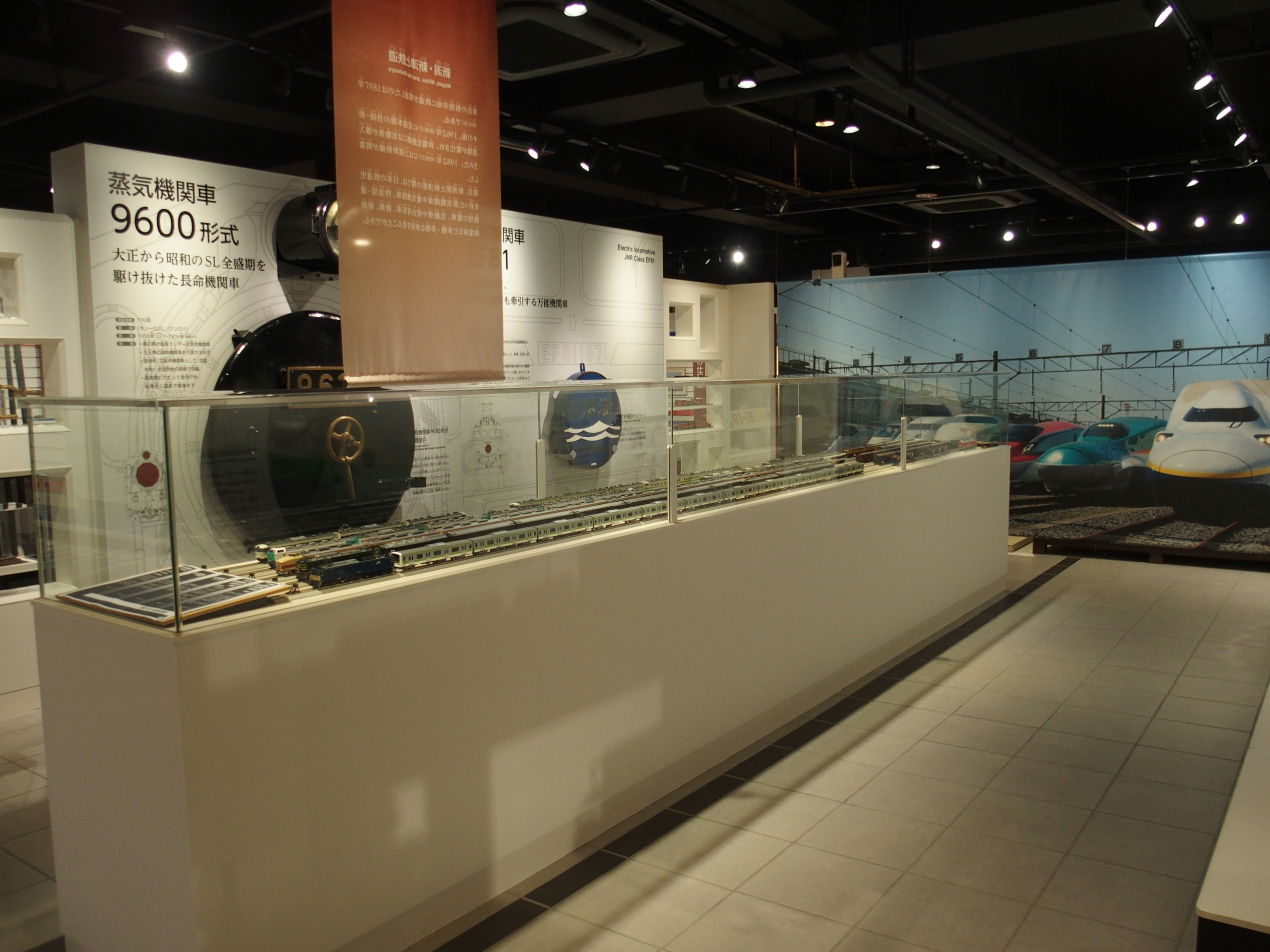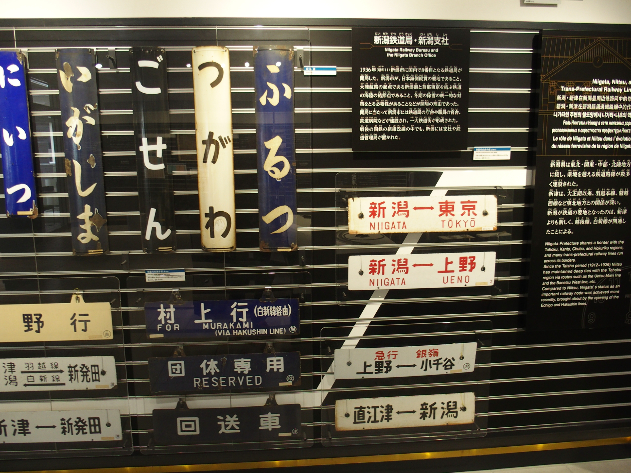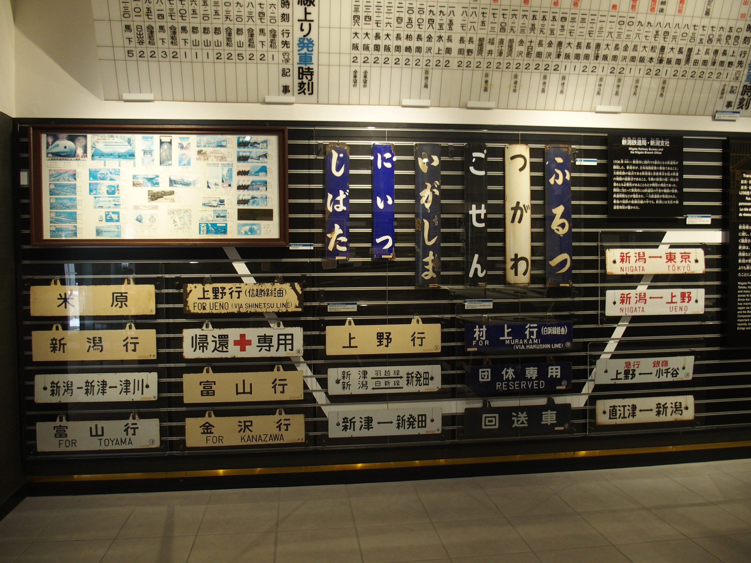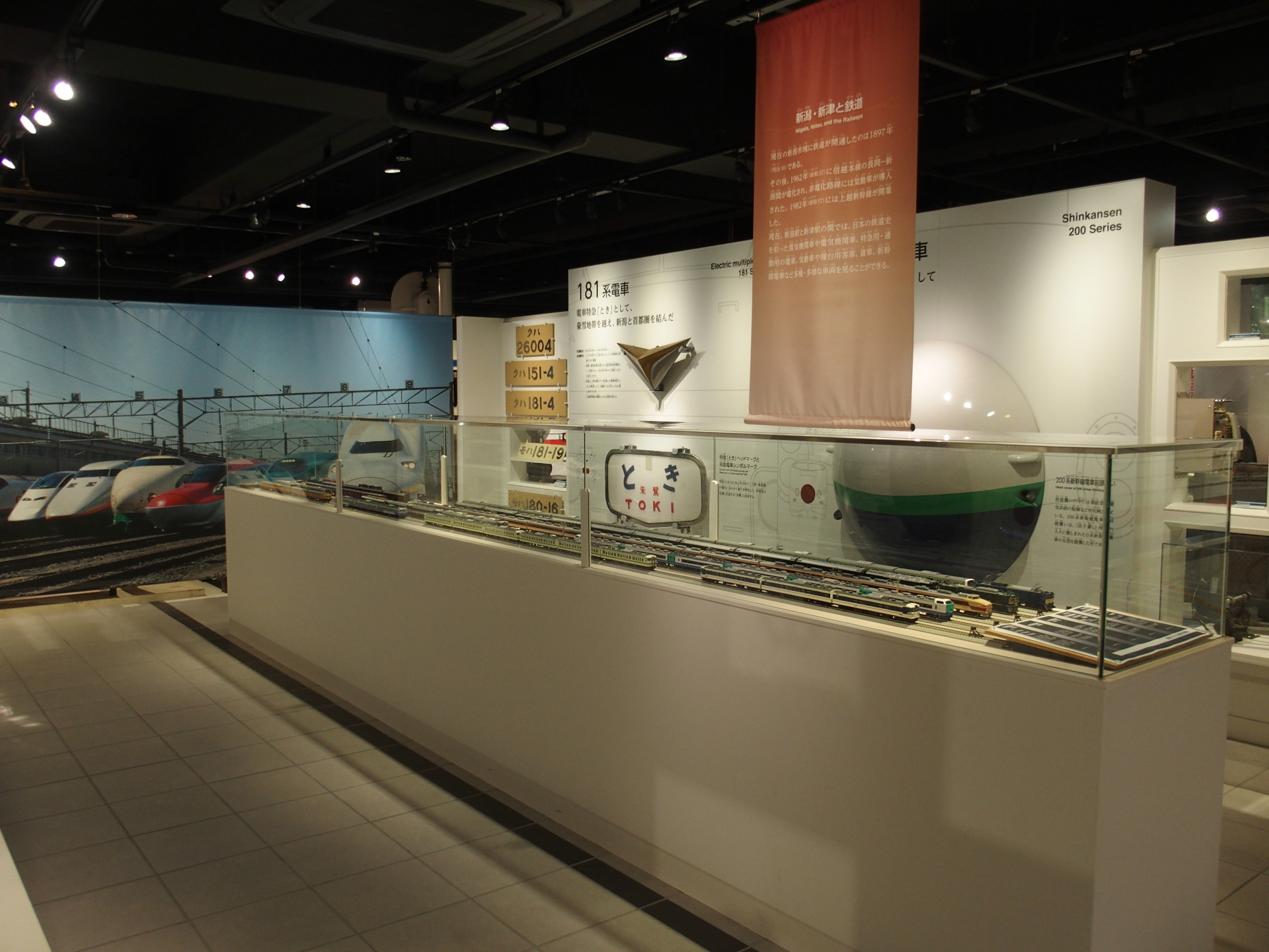「鉄道のまち新津」、200系新幹線、C57系蒸気機関車、485系特急が出迎えてくれます。