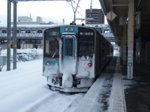 八戸駅[7:15発]→(青い森鉄道)→青森駅→(奥羽本線)→弘前駅→(五能線)→五所川原駅[19:17着]