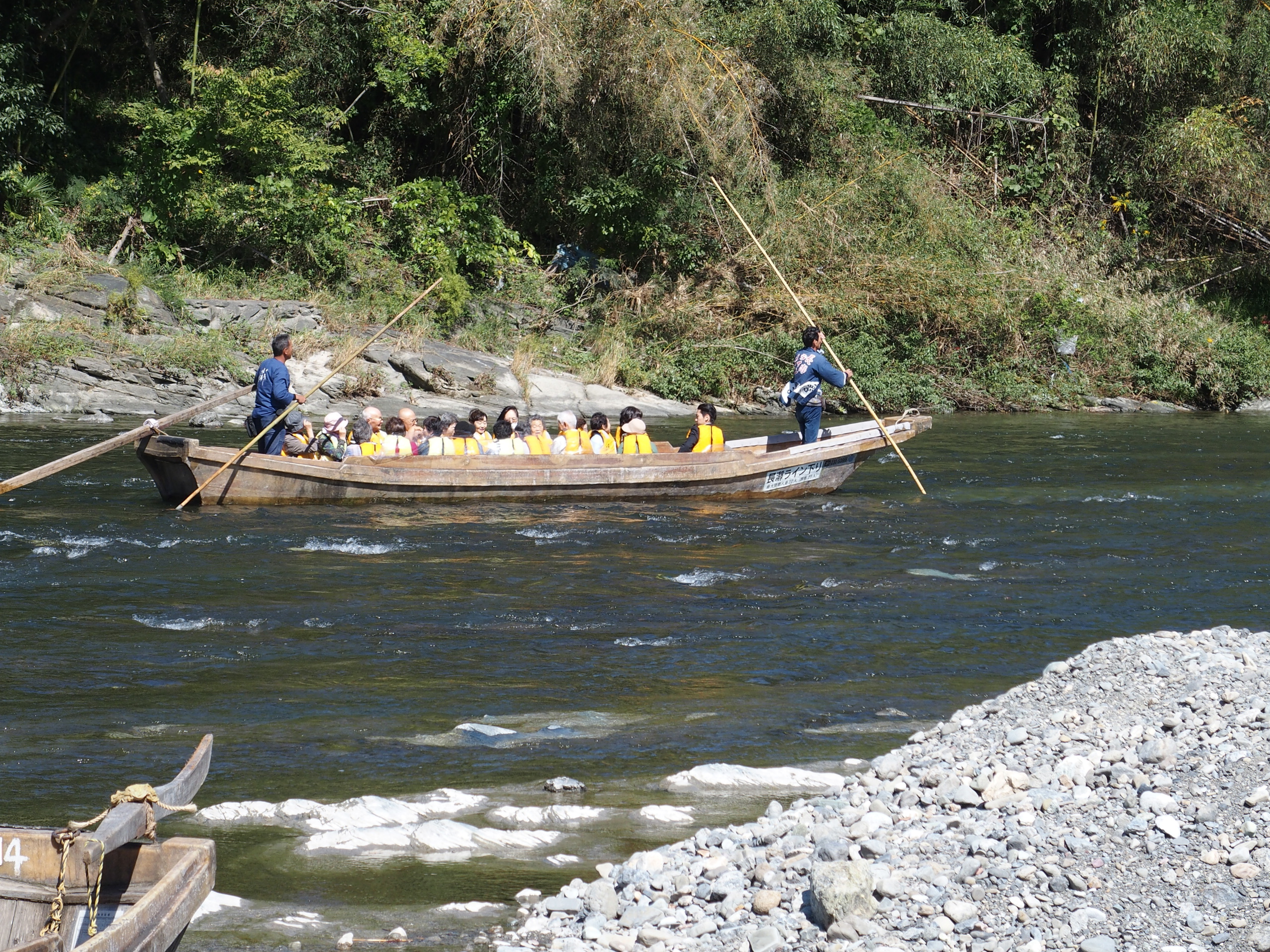 荒川ライン下りを堪能、当日は水量が少なくのんびりクルージング。