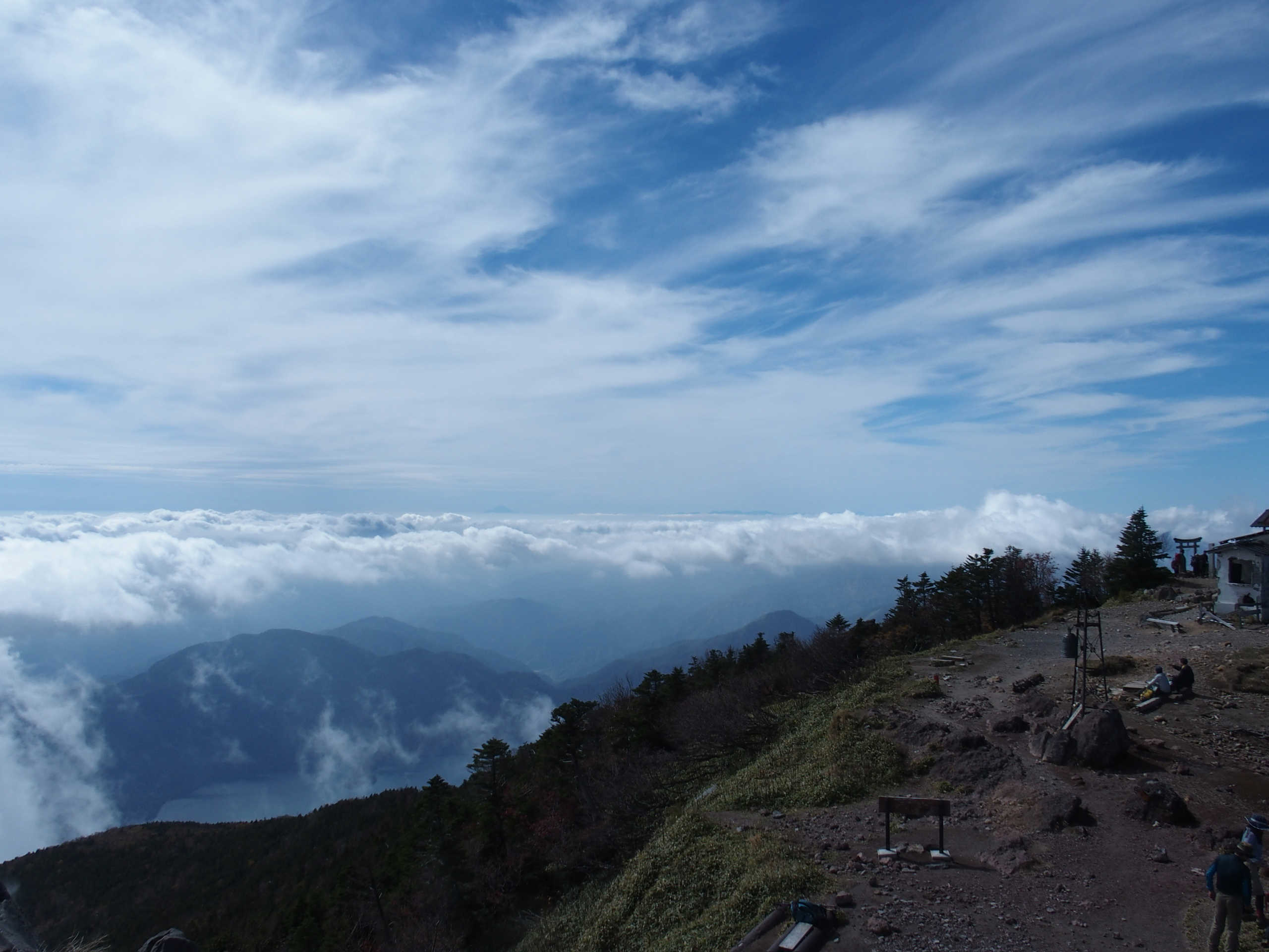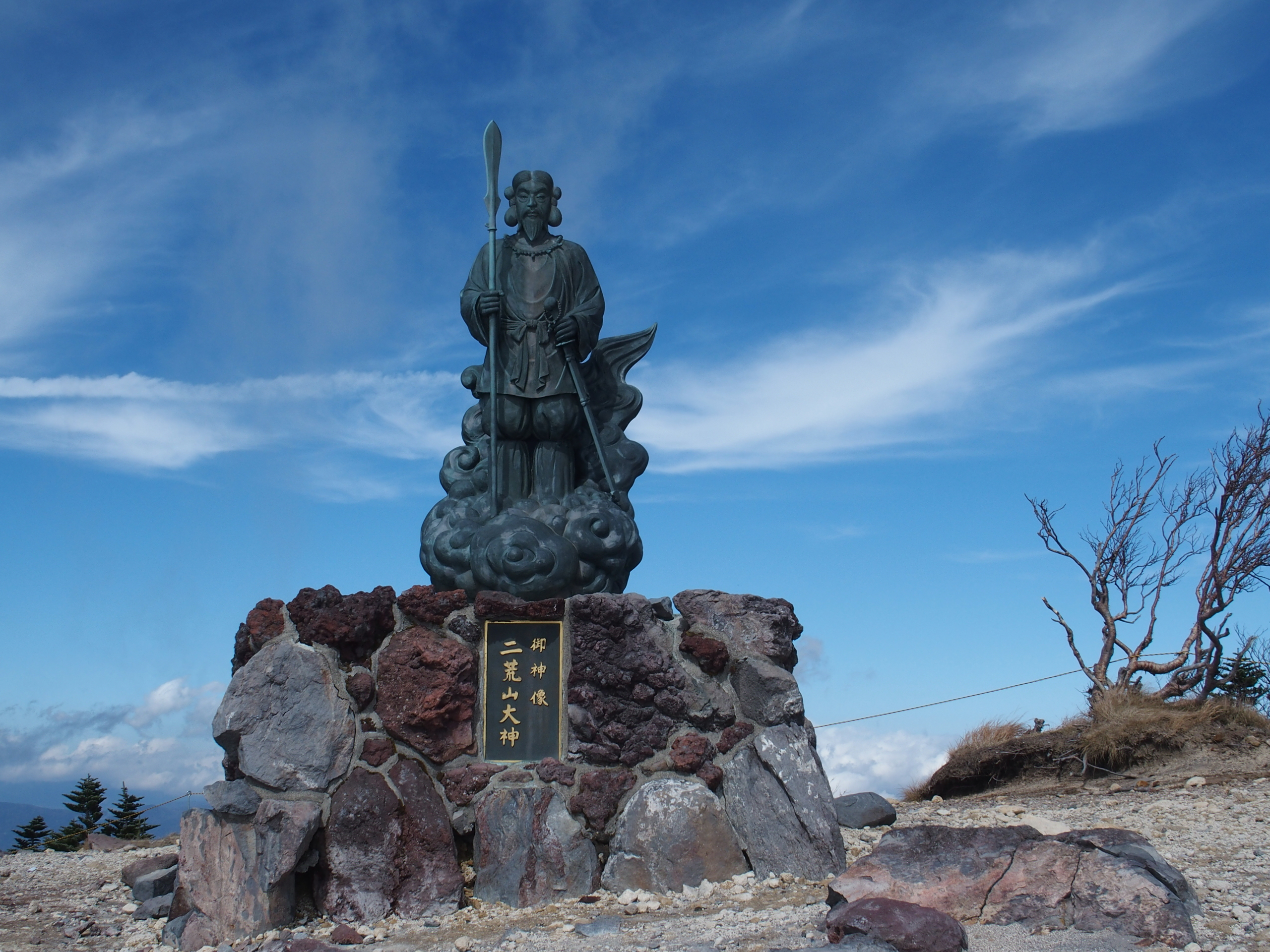男体山山頂、男体山山頂、白くソソリ立つ白刃、山頂から見える絶景、富士山が見えました、二荒山大神、中禅寺湖が見えました、右奥に尾瀬・燧岳が見えました、白根山が見えました。