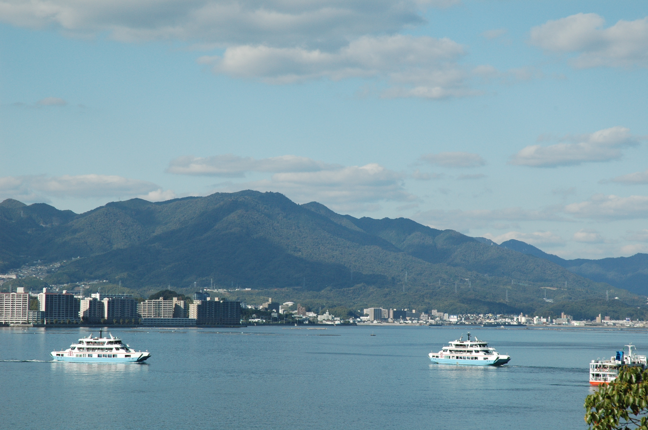 山陽本線・宮島口駅で下車し、徒歩5分でJR西日本の連絡船10分乗車。