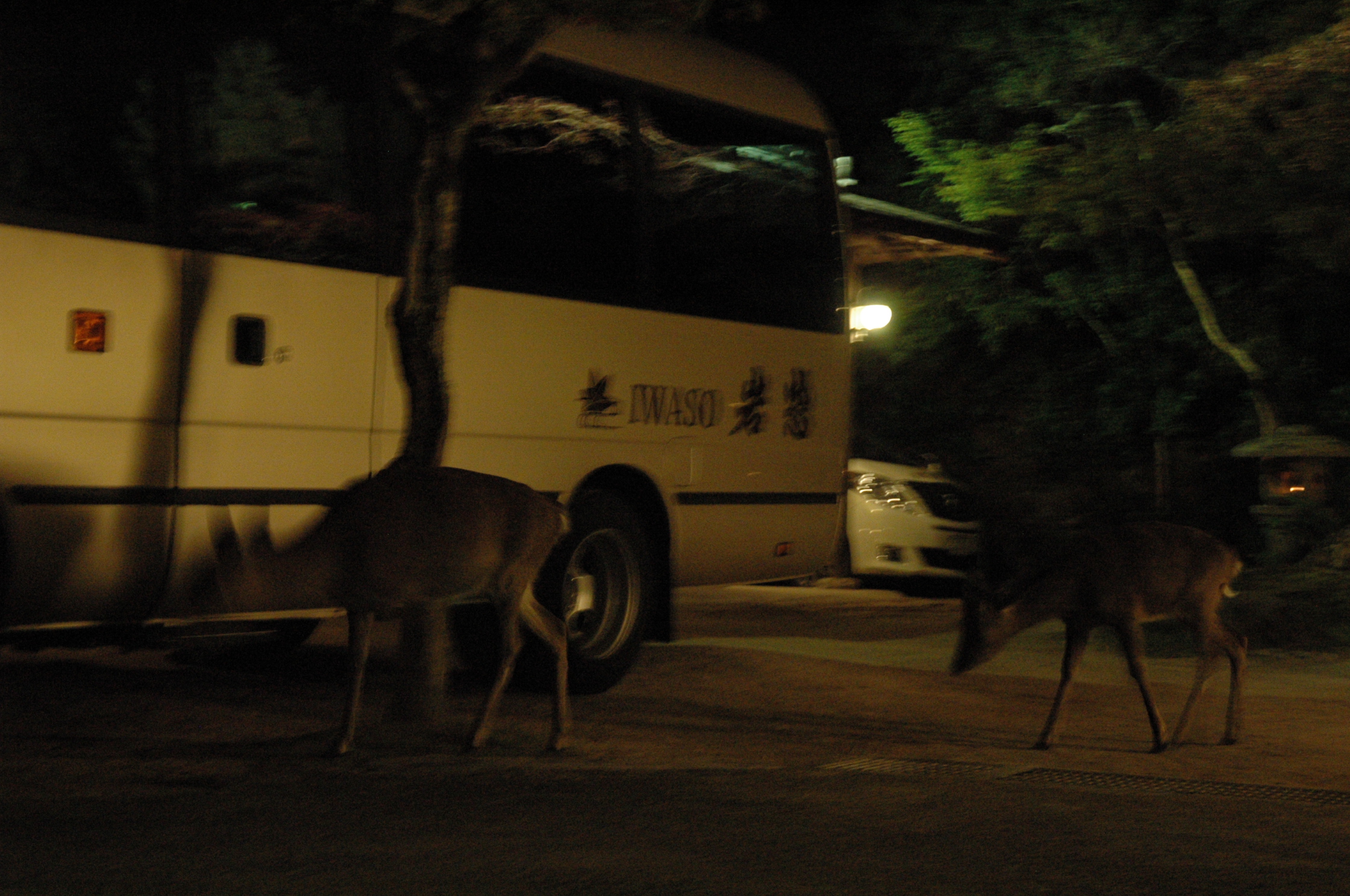 旅館の前にも鹿、隣接する「もみじ谷」もライトアップ