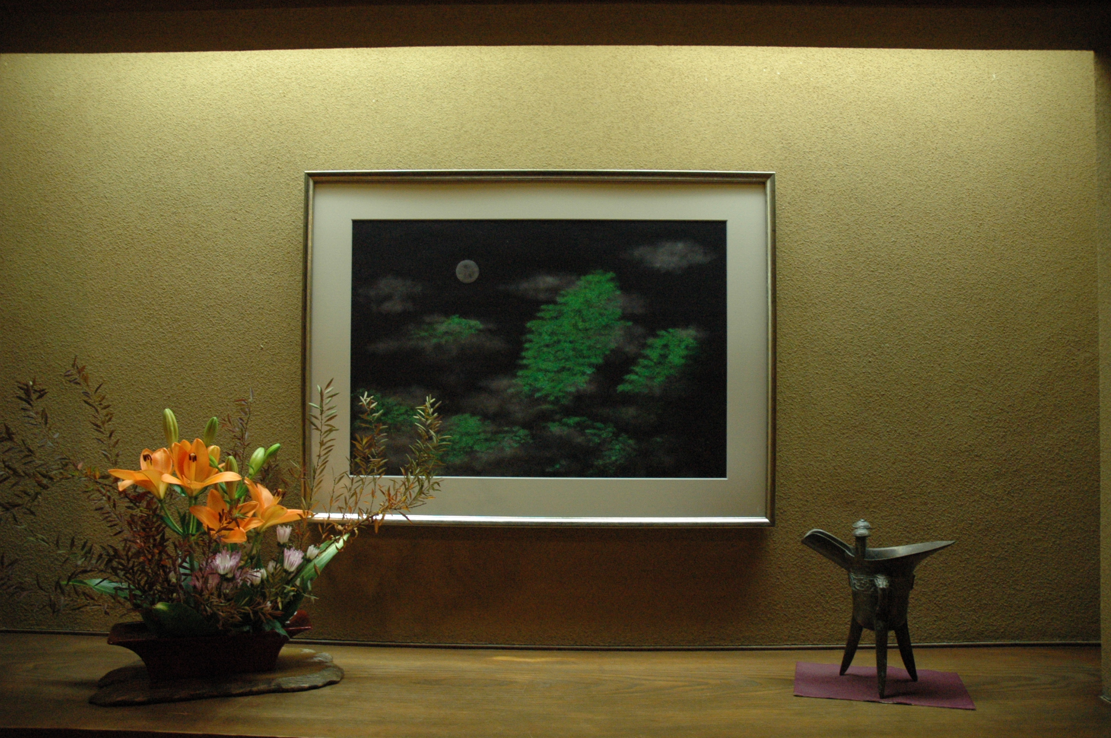 数々の美術品が通路に展示