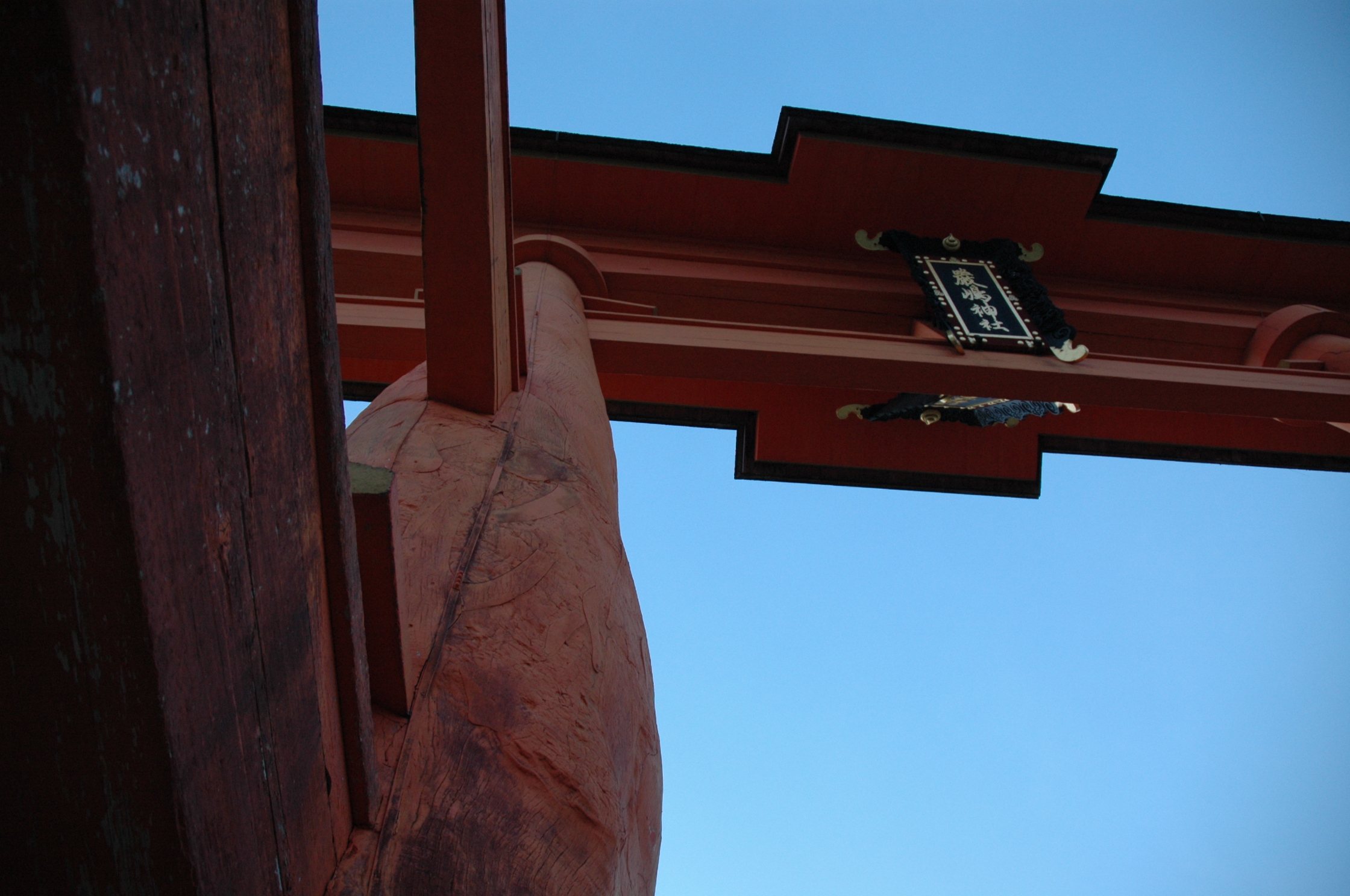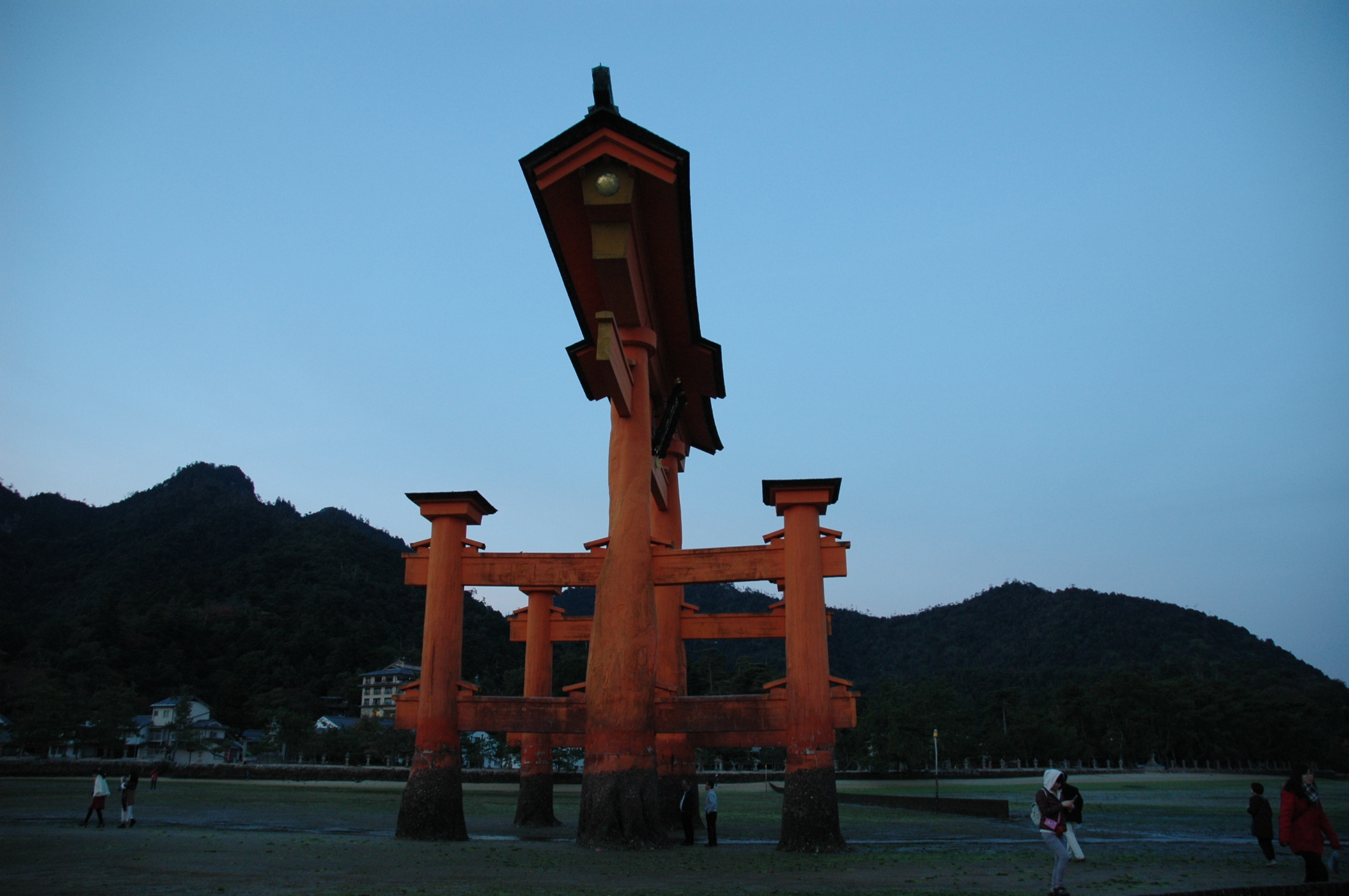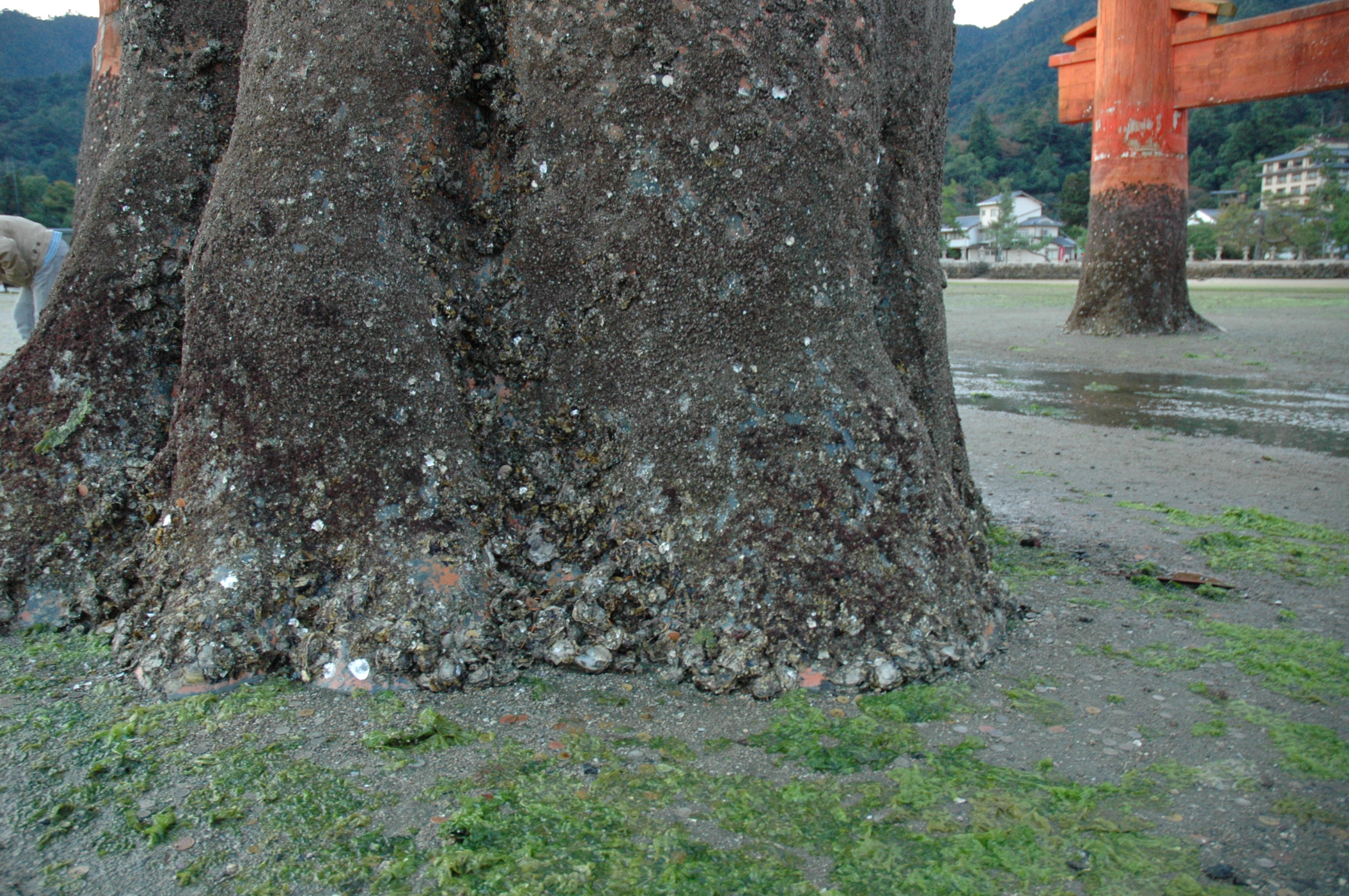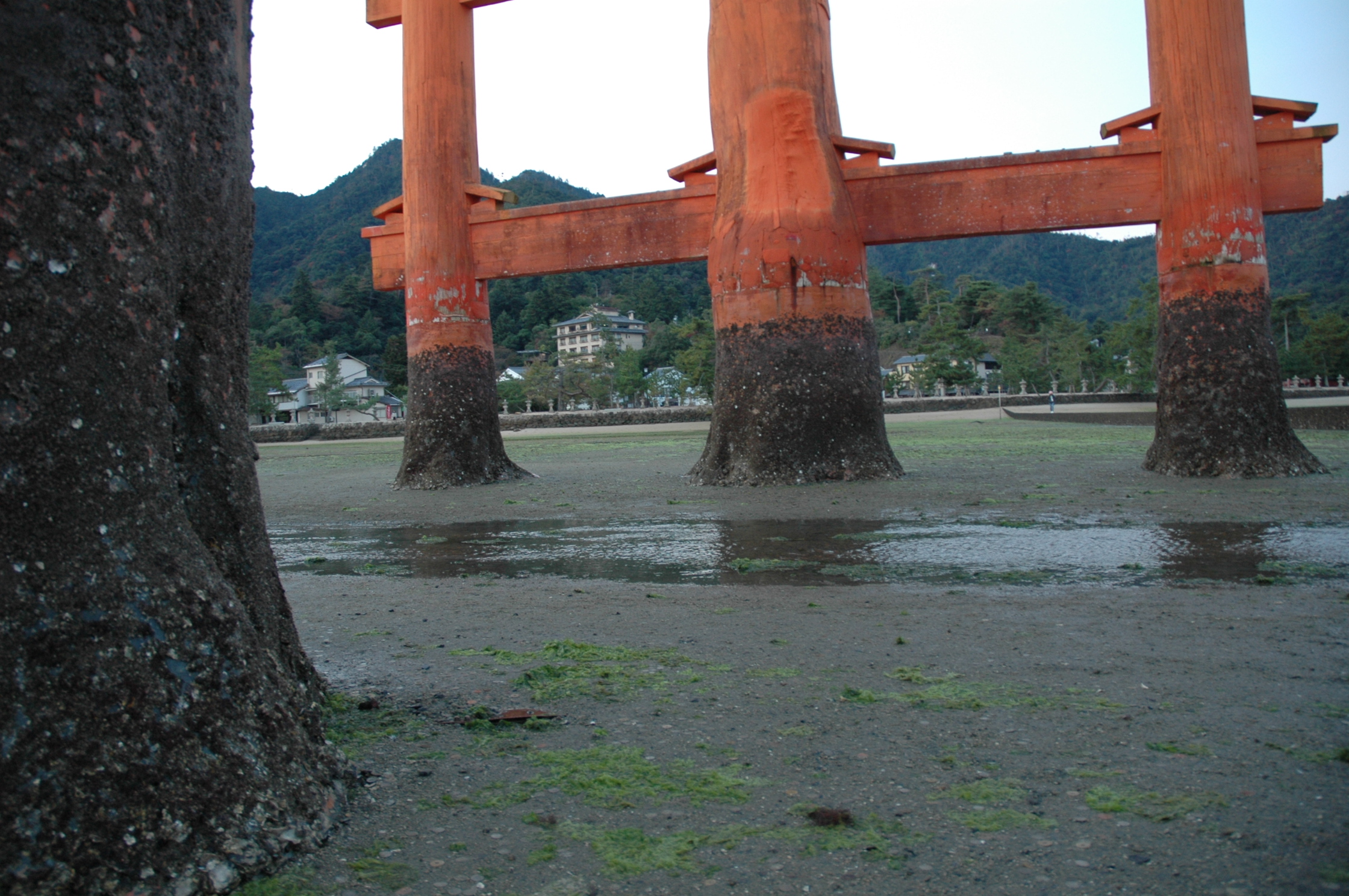 大鳥居の真下には、AM6:40頃到着。足元は思ったより硬めで歩きやすかった。