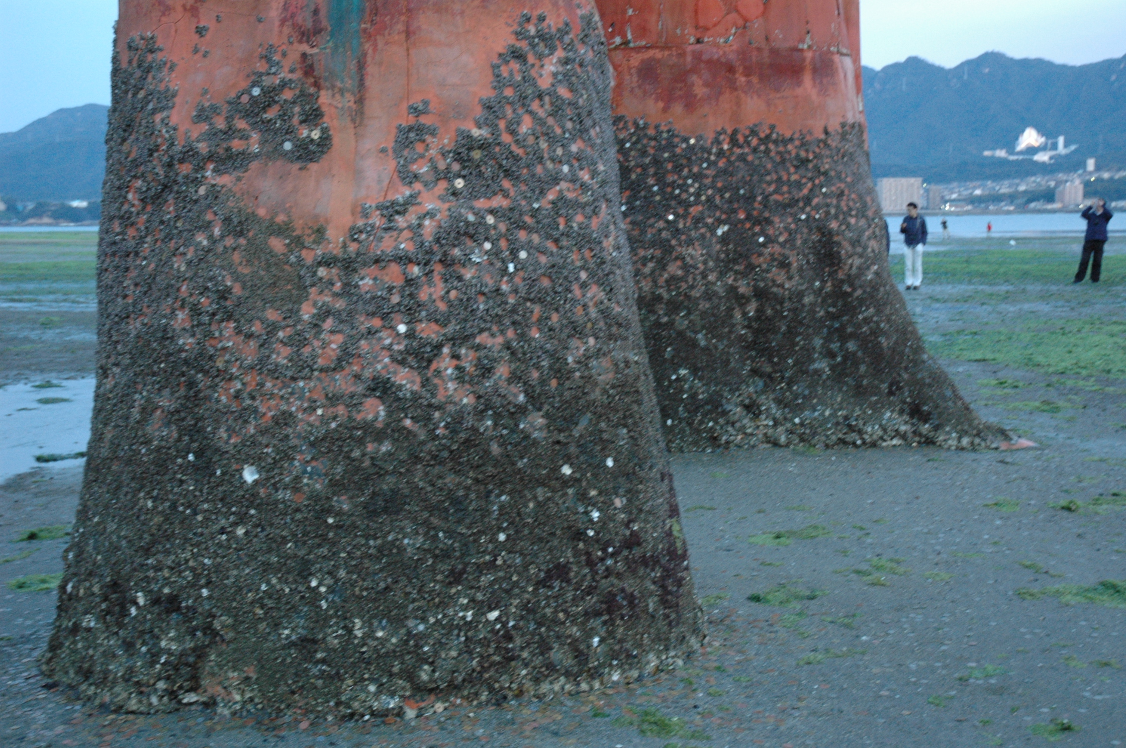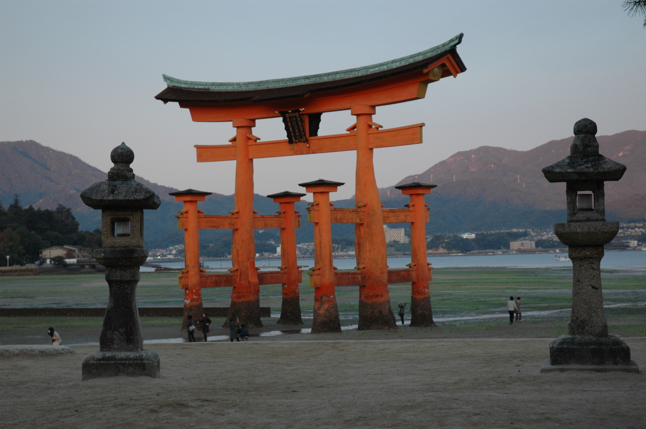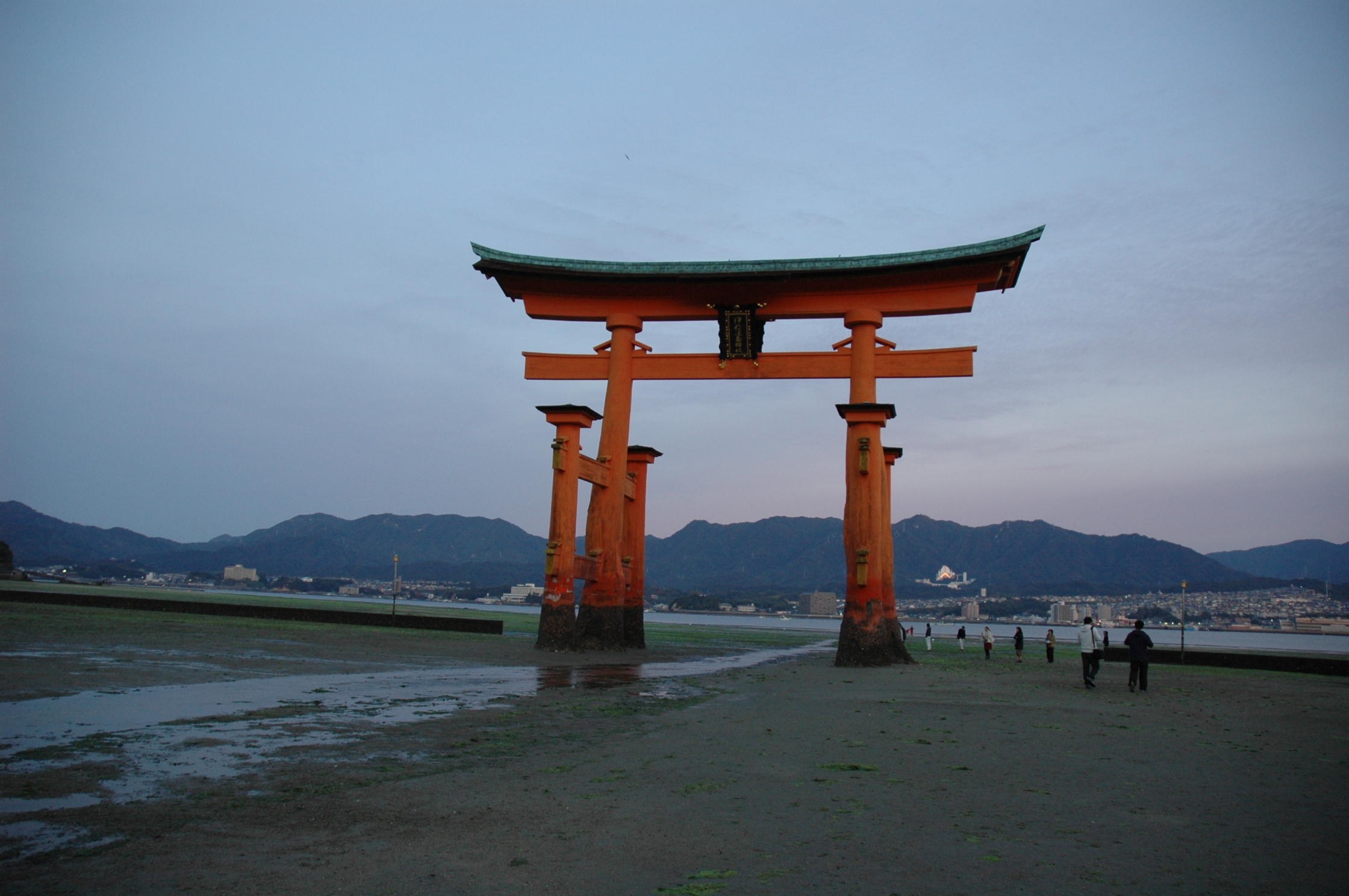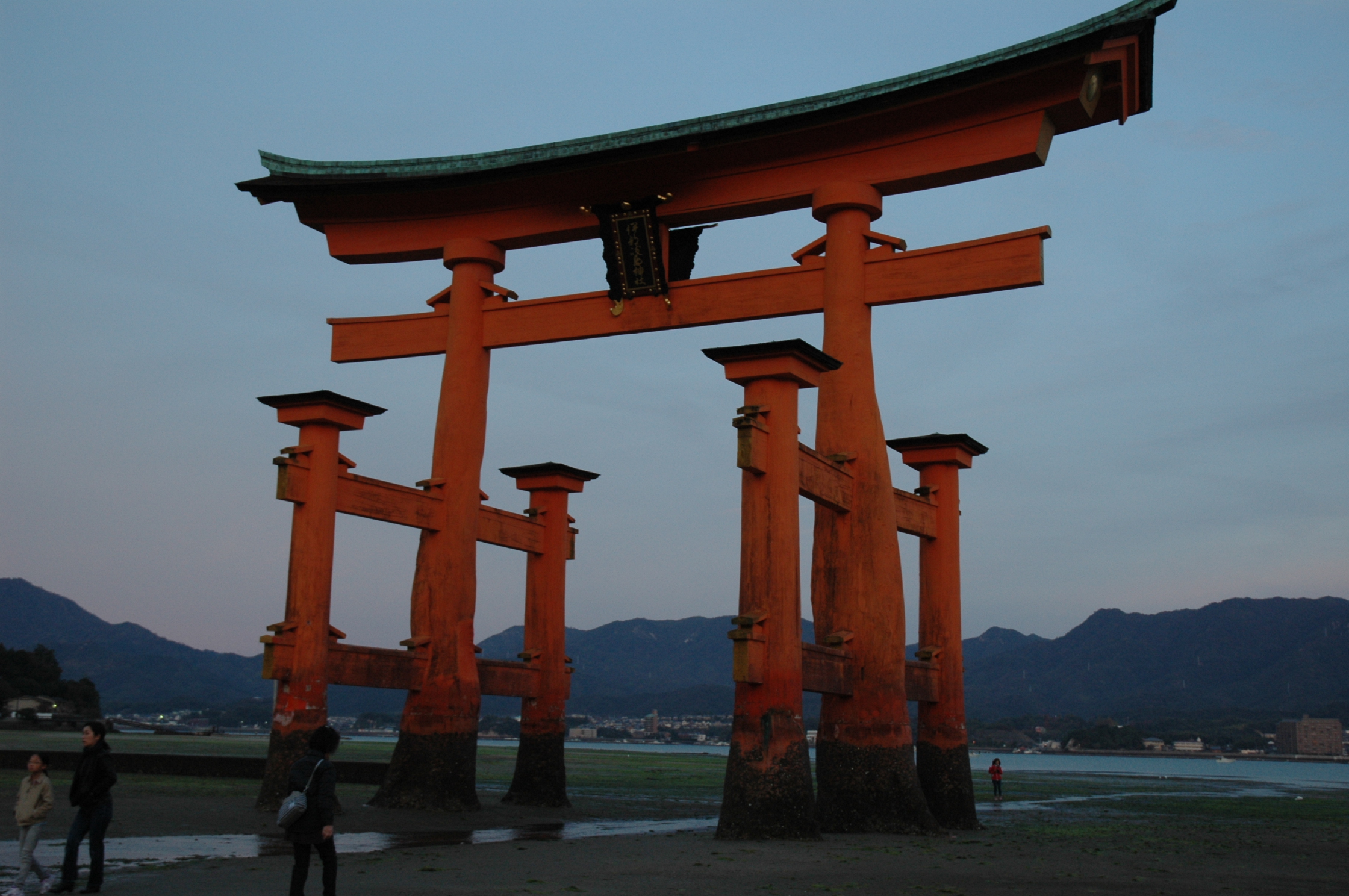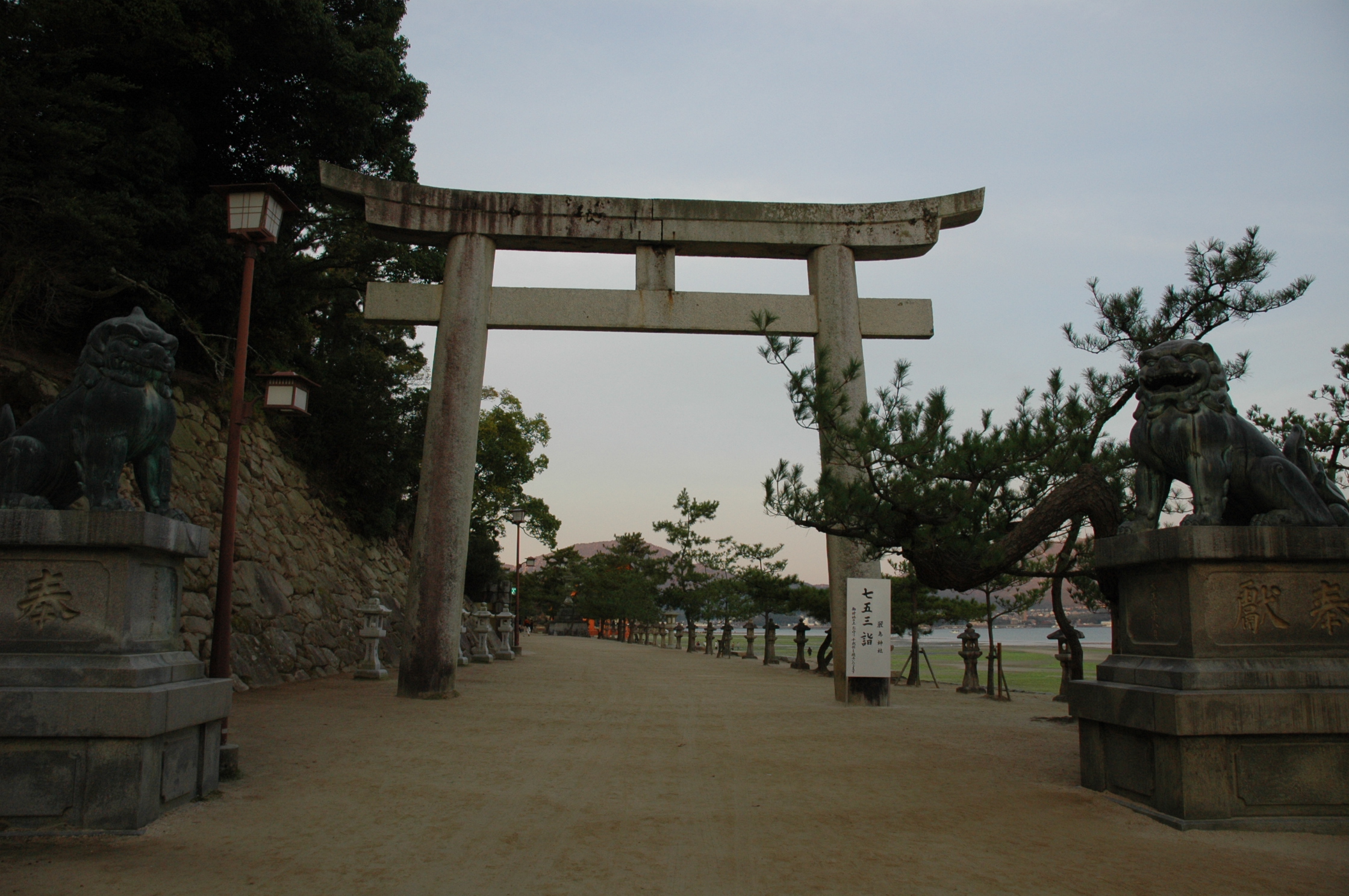 大鳥居の真下には、AM6:40頃到着。足元は思ったより硬めで歩きやすかった。